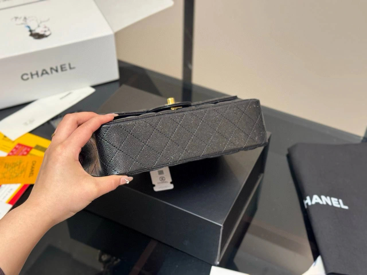 Iconic quilted flap design with CC turn-lock