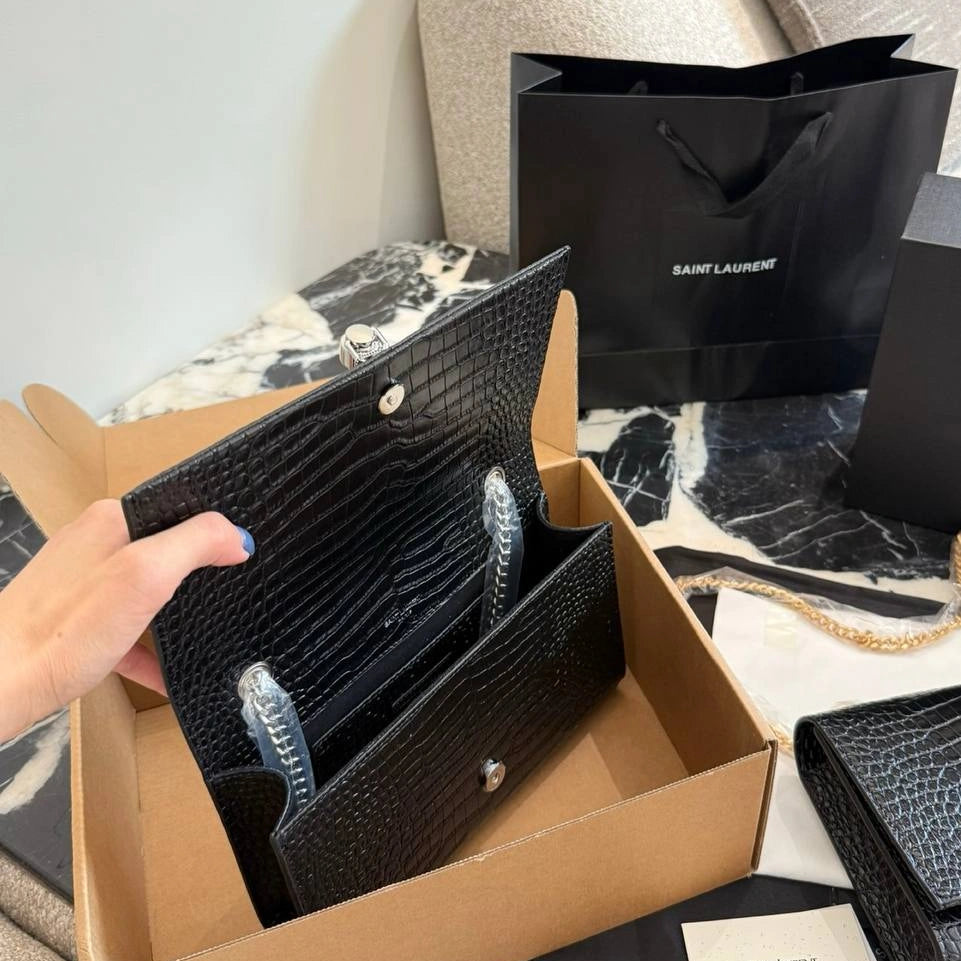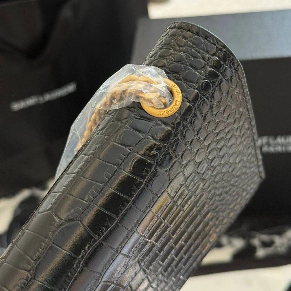 Iconic KATE design with signature tassel detail Elegant croc-embossed leather finish Gold-tone YSL logo for a timeless statement look