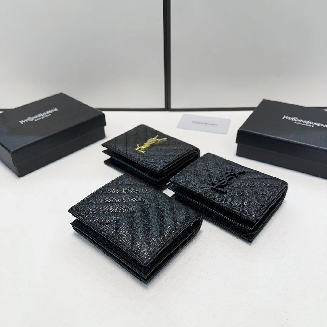 Classic YSL design with chevron-grained leather Iconic YSL logo detail Slim and practical, perfect for daily use