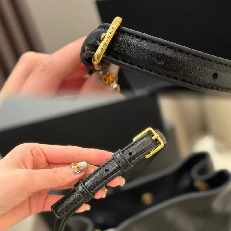 New-season JAMIE design Soft leather with modern geometric quilting Mini bucket / drawstring style for a relaxed yet chic look Gold-tone YSL logo detail